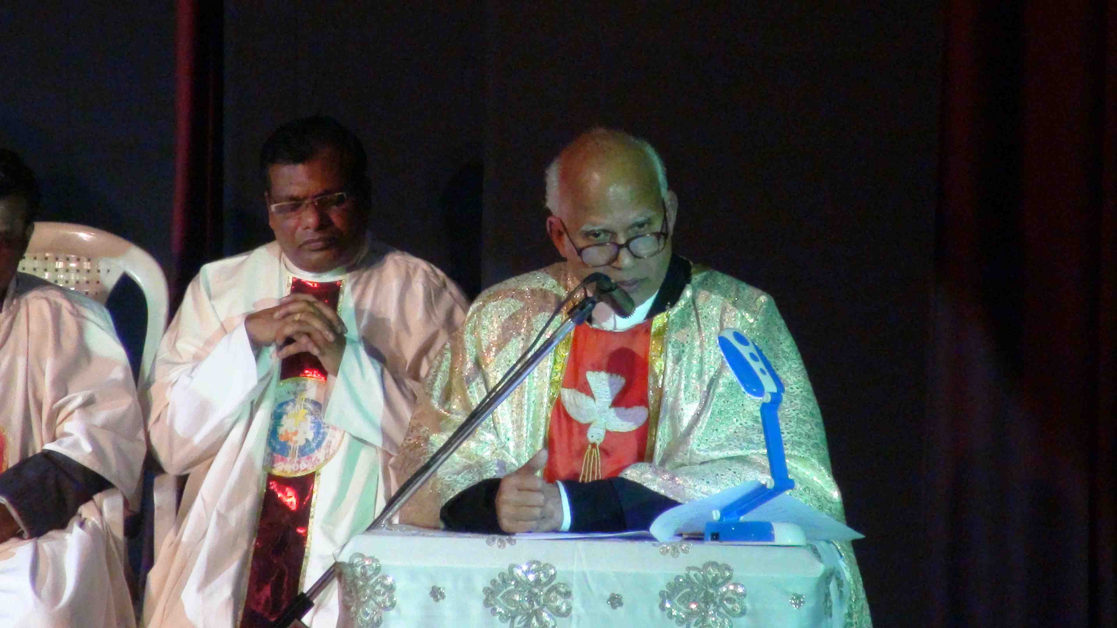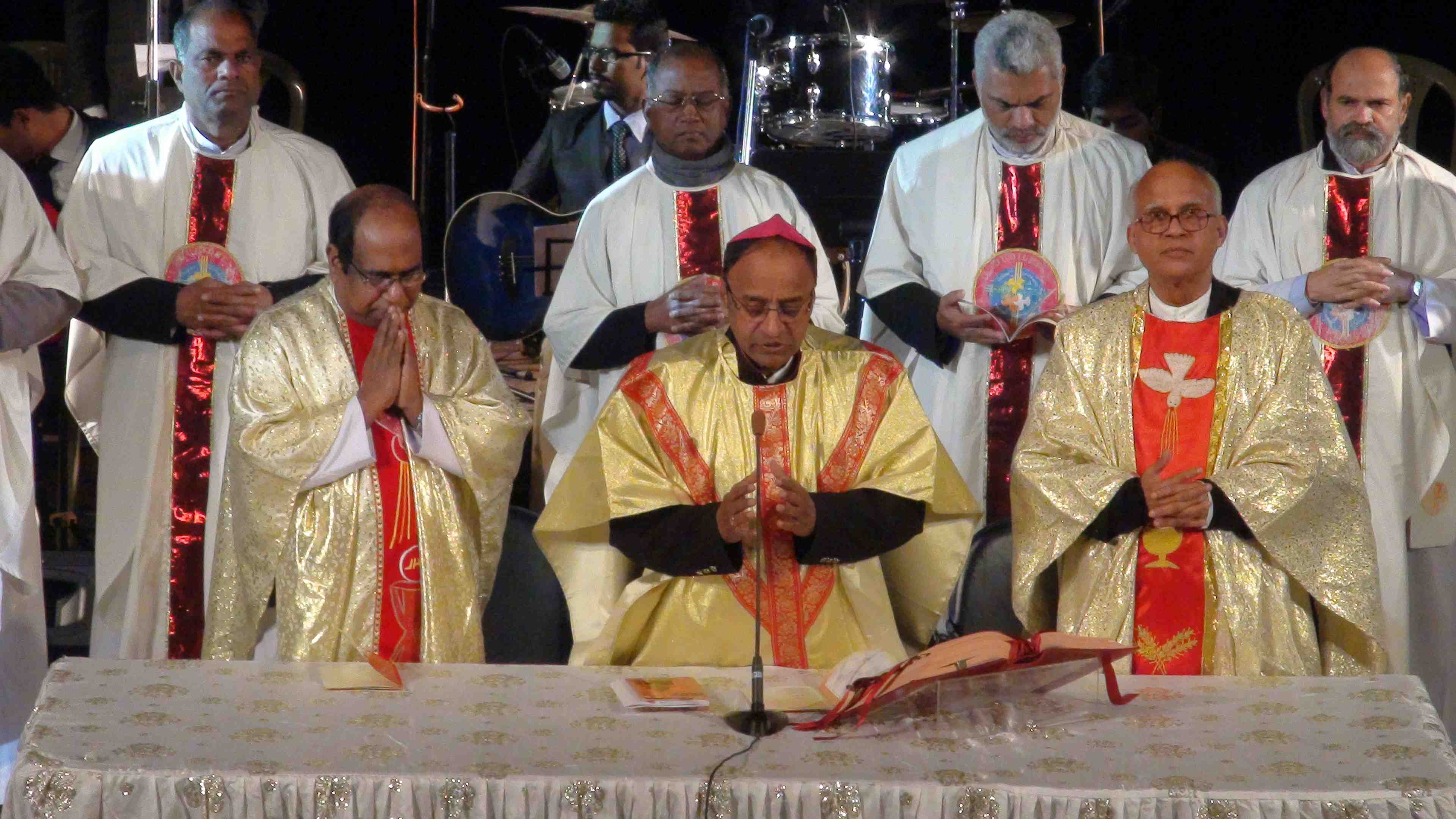 The evening Mass started with the Bishop Ignatius Mascharenas along with priests entering while the hymn was being sung.
